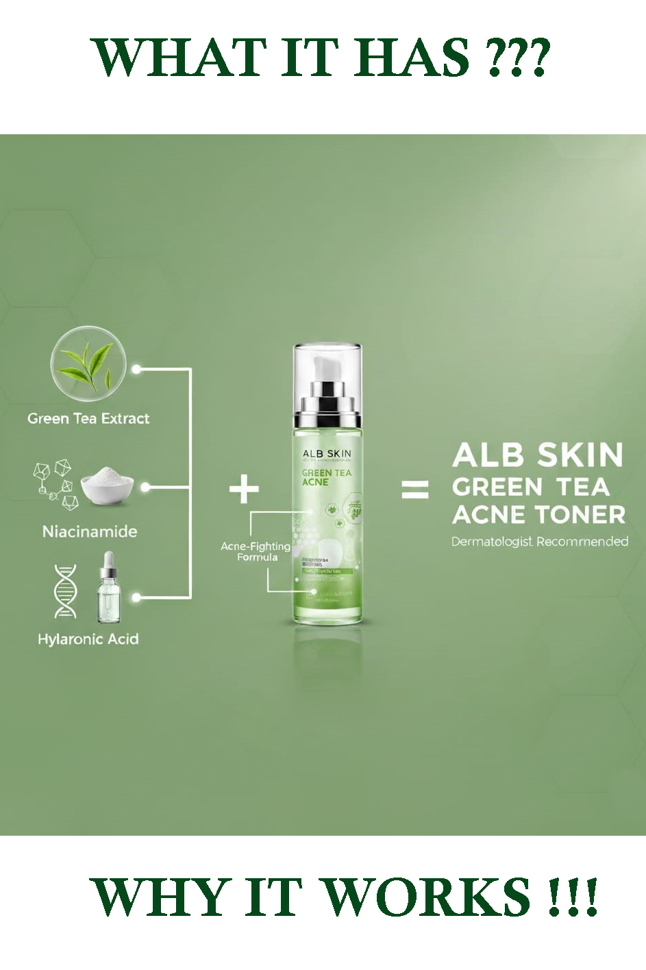 Main Ingredients : Tea tree Water, Green Tea Extract, Hyaluronic Acid, Niacinamide